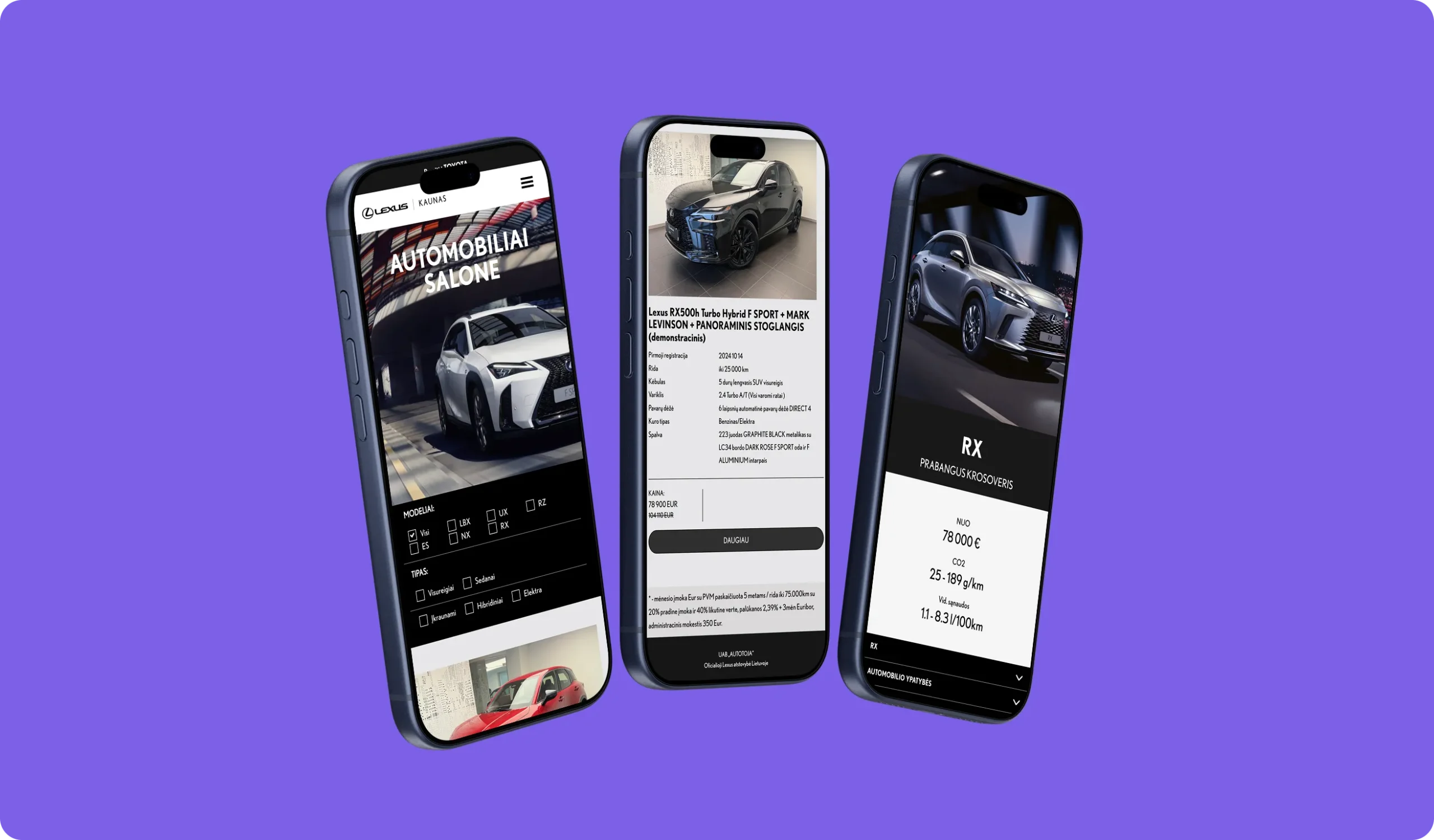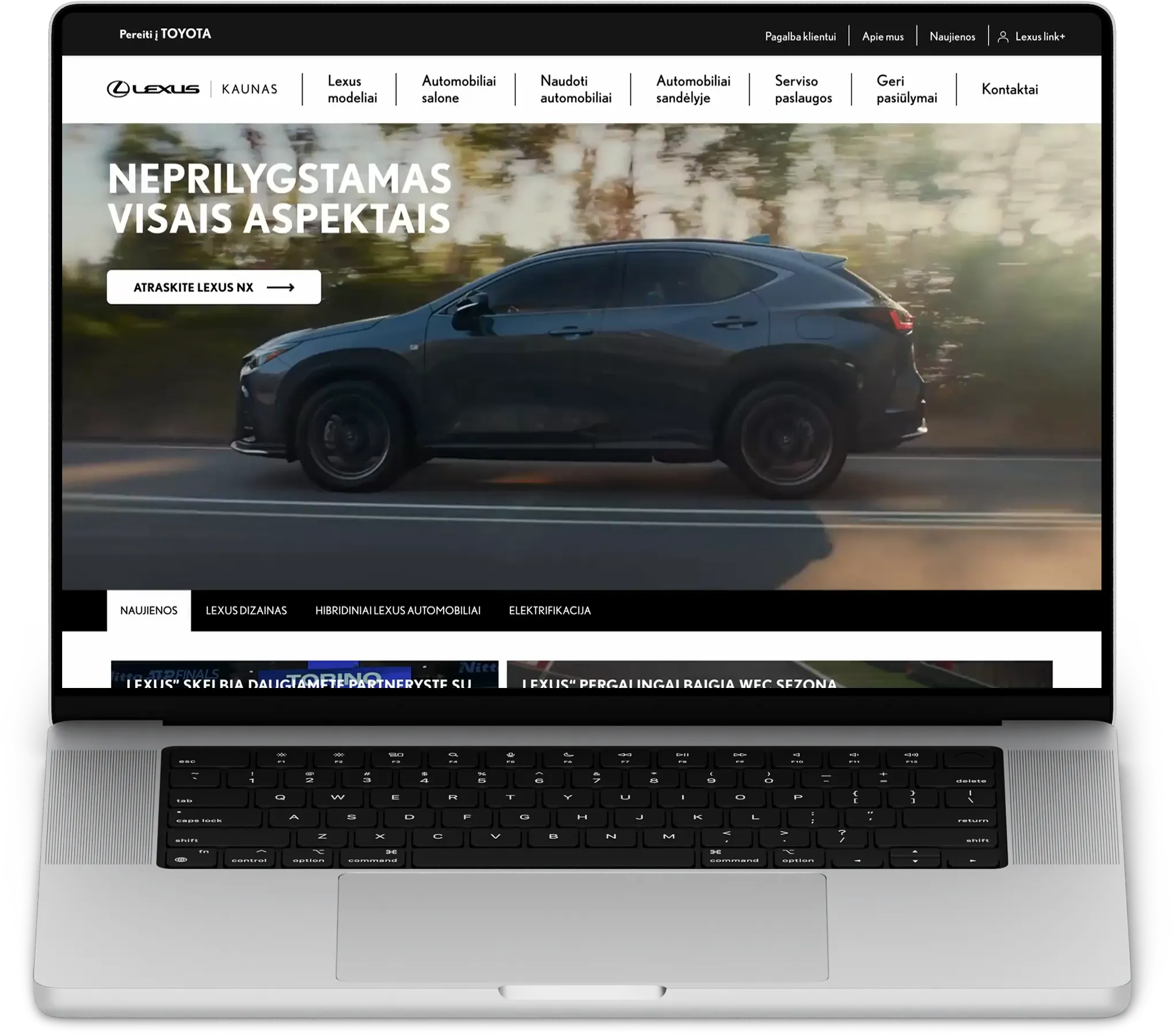 Lexus Kaunas veikia premium automobilių segmente, todėl svetainė turėjo atitikti aukštus kokybės ir profesionalumo standartus. Tuo pačiu reikėjo užtikrinti, kad vartotojai galėtų lengvai susipažinti su skirtingais modeliais.