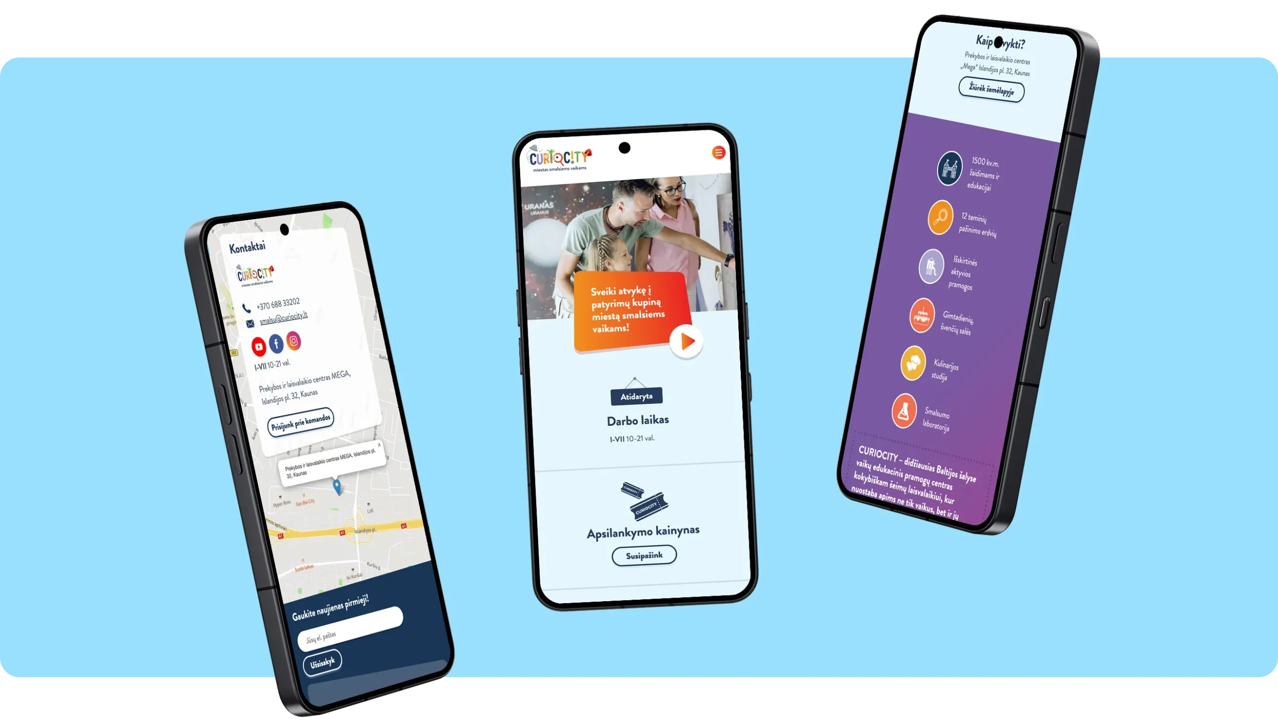 Svetainė perteikia Curiocity charakterį ir sukuria įtraukiančią patirtį dar prieš apsilankymą. Aiški struktūra ir patogus užsakymo procesas leidžia lankytojams greitai atlikti veiksmus, o centrui efektyviau valdyti klientų srautus ir pardavimus.