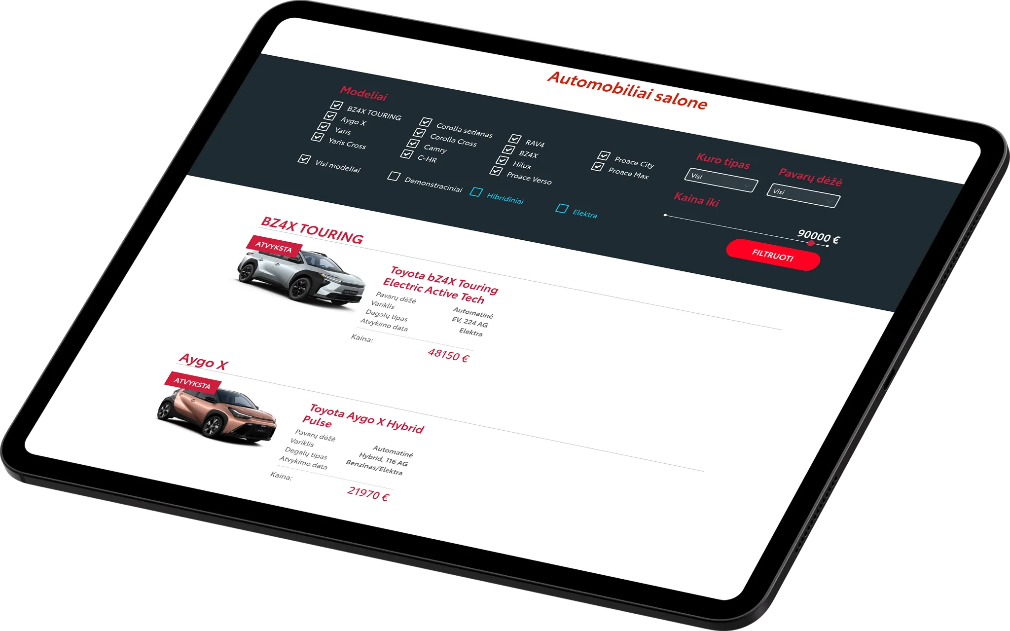 Autotoja siūlo tiek naujus, tiek naudotus automobilius, todėl reikėjo sprendimo, kuris leistų patogiai pristatyti didelį skirtingų modelių kiekį ir padėtų vartotojams greitai rasti tinkamą variantą.