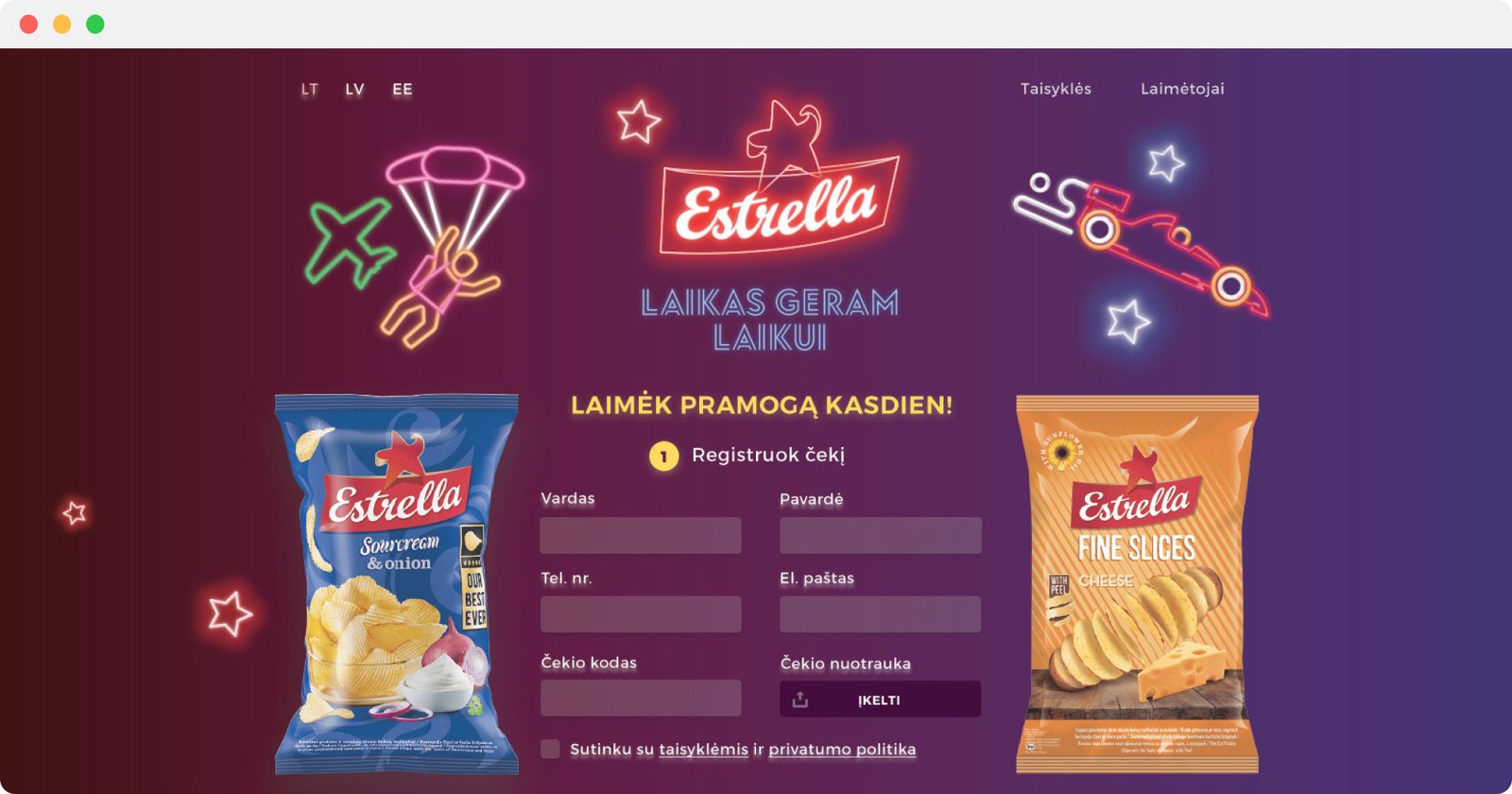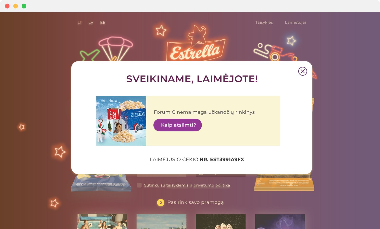 Vienas iš mūsų įdomiausių projektų! Bendradarbiaudami su „Estrellos“ marketingo komanda, sukūrėme unikalų dizainą interaktyviai loterijai, kurioje laimėtojai galėjo pasirinkti įvairias pramogas pagal savo pageidavimus.
